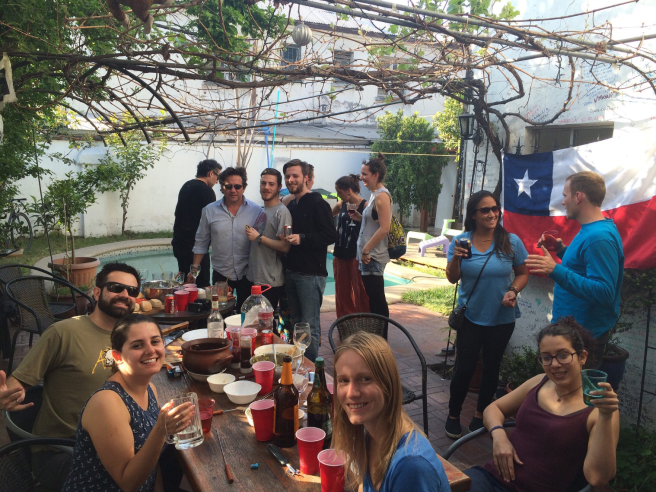 We were lucky enough to be in Santiago for their Independence Day and Ivan threw a huge BBQ to celebrate. Steaks, churi pan (grilled sausages in bread similar to hot dogs), empanadas, ribs, a spread of side salads, plenty of cervezas, Chilean wine, and of course terremotos (in English it translates to earthquake) which consist of wine, fernet, grenadine, and pineapple ice cream…it’s a specialty cocktail of Chile that will have your head spinning. The hostel had more guests from the U.S., including a young man who was attending Stanford and knew more about Classic R&B than everyone in the room put together, Ivan’s Chilean friends, and some Germans (they’re everywhere). It was a beautiful day for a BBQ and the whole city was celebrating. That evening we took a hostel field trip to the stadium where there was a carnival and fondas, which are the traditional Chilean parties.
