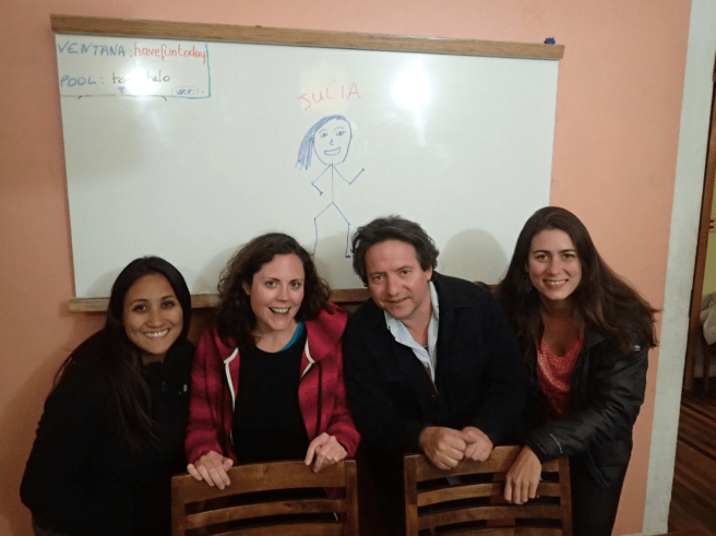 When we first arrived at Ventana Sur, we were greeted by the owner, Ivan, who owned the house which was the hostel. It was a charming house with only four bedrooms, a sunny kitchen, and a tranquil backyard located in the trendy neighborhood of Barrio Italia. For a hostel, it had a warm and homey feel to it compared to some that are too big and out of control. We were instantly lured in when we saw “Free Wine Tasting Tonight at 7:29pm” written on the community dry erase board. All the guests moseyed down to the dining room around this time and gathered round for the wine tasting. Besides the two of us, the group included two guys also from the U.S., a Brazilian couple, and a solo Brazilian traveler. Ivan started pouring the wine and we all started chatting and exchanging stories to the point where we were about seven bottles in, playing UNO and rocking out to TLC, Tupac and other old school tunes chosen by Ivan. It was a great welcoming. Ventana Sur is famous for their BBQs so we convinced Ivan to have one the following day, porque no? Everyone contributed some type of side dish or snack and Ivan worked his magic on the grill. We were also joined by Ivan’s friend Julie from Belgium, or as Ivan calls her in Spanish, Julia (pronounced hulia), and we celebrated the start to Cara’s, my travel pal, birthday weekend with fudge brownies from the bakery on the corner.